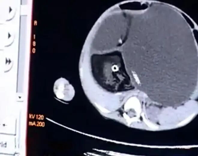 肿瘤已经严重压迫内脏,一旦打开腹腔,肺压急剧减小,有可能引发肺水肿,造成呼吸衰竭。