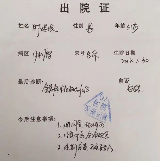 这意味着,时建设真的摆脱了癌症的折磨,他将真正拥抱健康的人生。