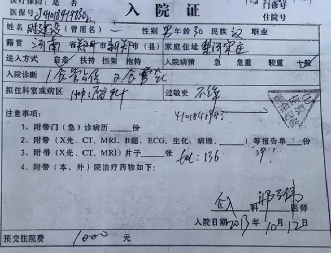 2013年11月,医生告诉时建设,他的病情正在逐步恶化,必须马上进行手术。