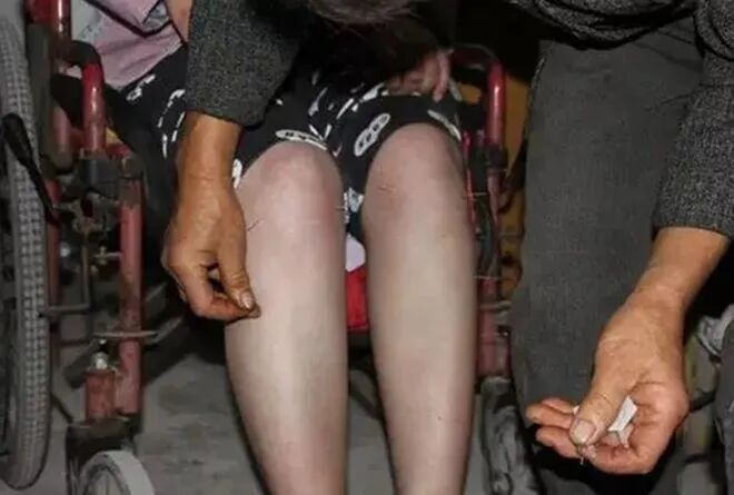 她便用自己做实验,每次学了针灸后便自己扎自己,所以身上经常是针灸后留下的青紫。