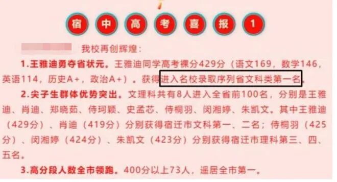 然而,当白湘菱感到沮丧时,江苏省在普通教育中排名第二。宿迁中学王亚迪被北京大学和清华大学录取,成为当之无愧的“高考状元”!