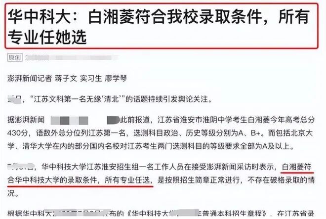 然而,令人惊讶的是,在注意到互联网上关于自己的讨论后,白湘菱似乎对此事非常冷静,对于被清华北大拒绝录取并不感到难过。