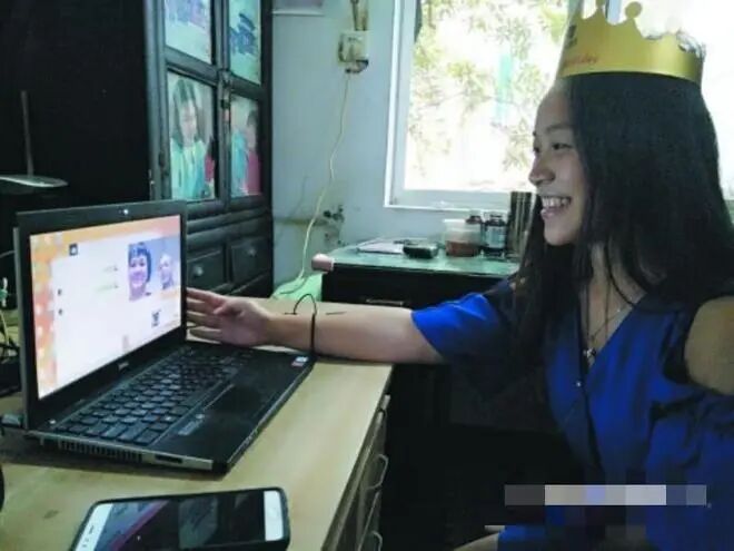 乔伊斯父母也通过视频的方式给乔伊斯送了祝福,大家一起为这个美丽善良的女孩唱生日歌,这一刻,人们之间没有国籍的分别,他们都是乔伊斯的亲人。
