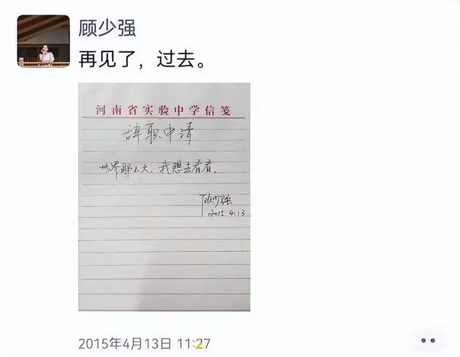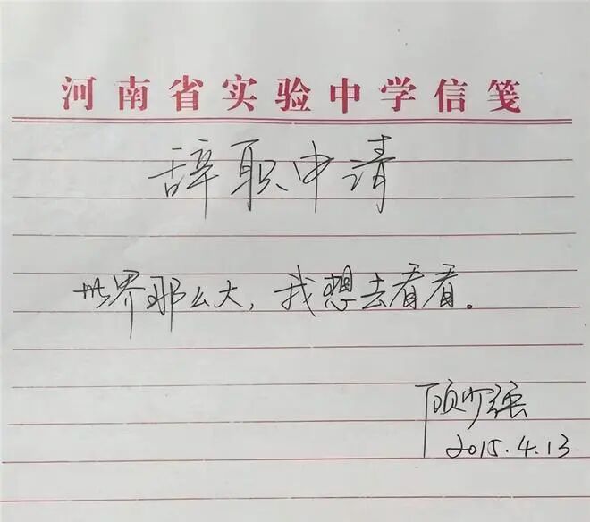 顾少强回到办公室,写下了辞职申请。理由仅仅十个字:“世界那么大,我想去看看”。
