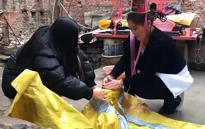 所以曹占茹想到了可以用尿素袋子作为代替,黄色的袋子正好可以用来当成龙袍。