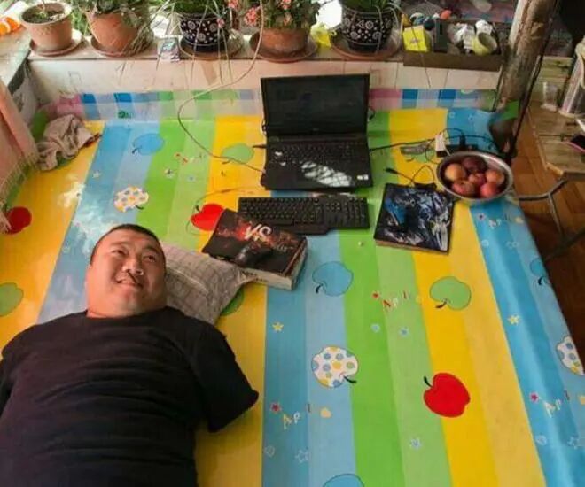 于是,袁立东让自己的妻子将家里的二手电脑搬到了卧室,并借助妻子的帮助,坐到了床上。