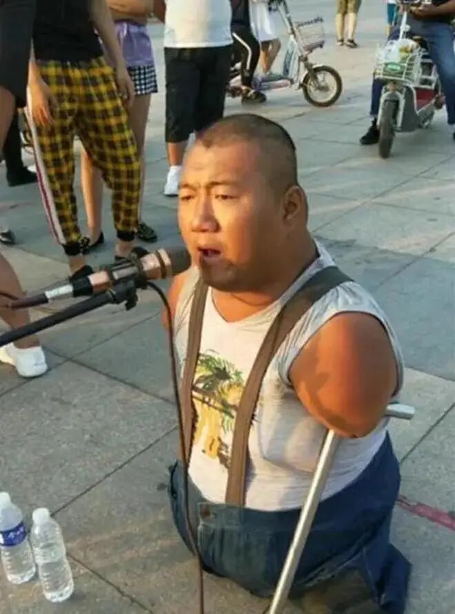 但是,他并不是单纯地乞讨,而是卖艺乞讨。