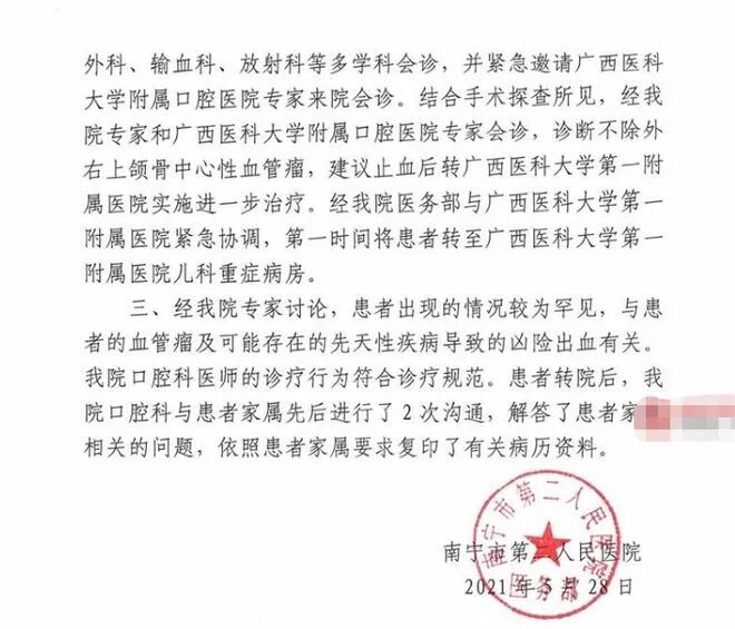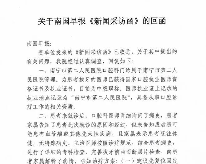 为了给外界一个统一的答复,南宁市第二人民医院特地给《南国早报》发了一份书面回函。