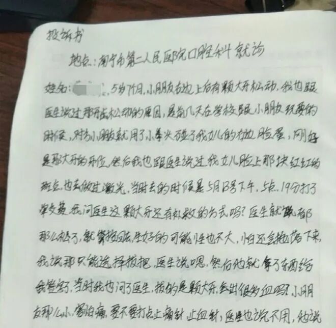“我签完字还问过医生,这个拔牙手术有没有风险,要不要给孩子打点麻醉针之类的。”周女士一想起当时的情景就后悔不已。