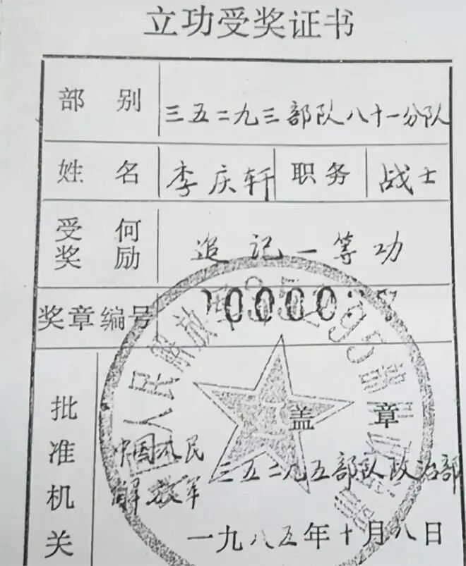 那个年代国家边境并不安稳,战事久未停歇,有勇气去参军就意味着有勇气做好牺牲的准备,何况李庆轩入伍的1985年1月,那已经是老山轮战的第二年。
