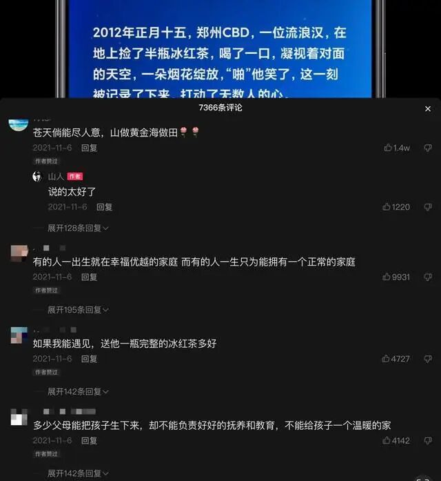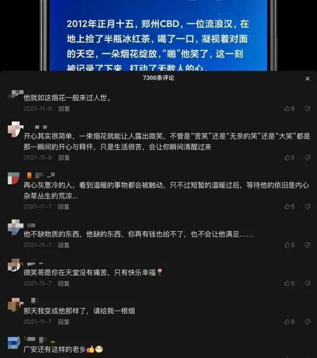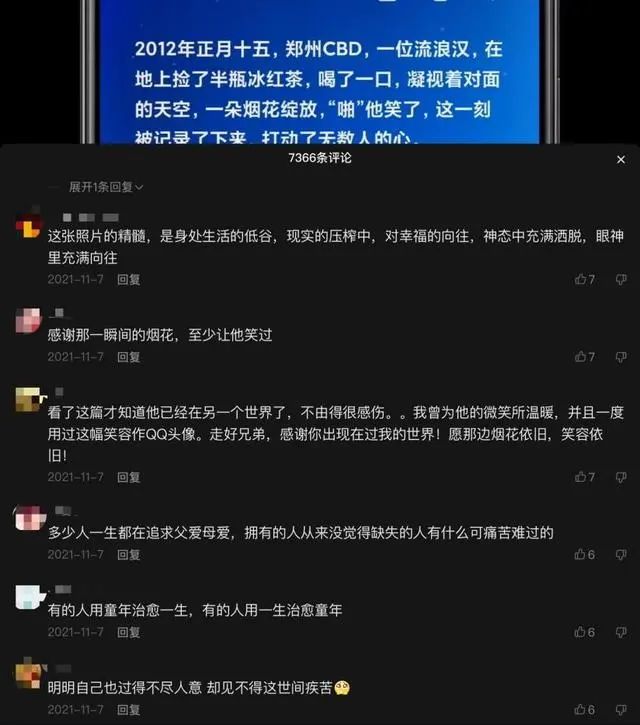 烟花的绽放,打动了在场的所有人。而流浪汉的一个微笑,打动了田仲煜心底最柔软的地方。