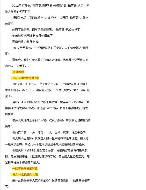 直到2012年的元宵节,远在郑州的“微笑哥”因为一张照片被众多网友关注。