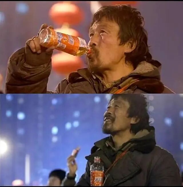 孤身一人与阖家团圆的真实反衬,衣着光鲜与破破烂烂的强烈对比,大概所有人都会对这个流浪汉产生一种悲悯心酸的共情。