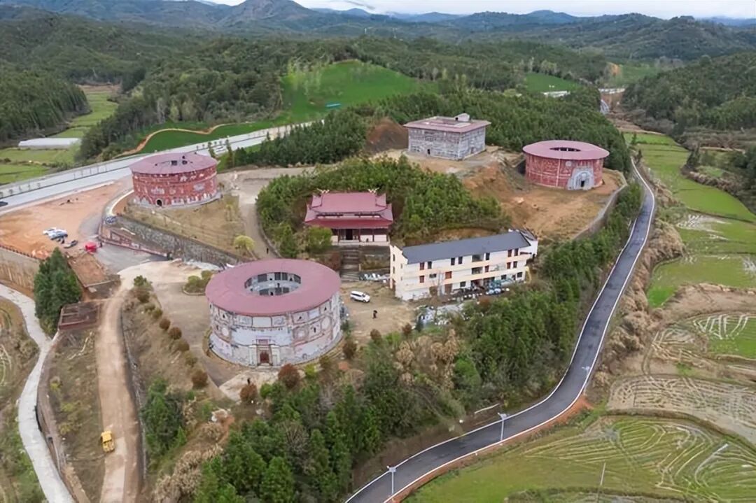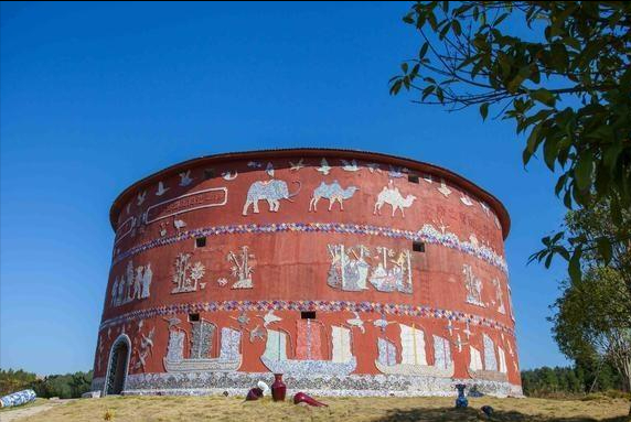 在江西省浮梁县新平村的群山里,有个以圆形为主体的现代高层建筑群,它造型奇特,色彩绚丽,和当地的居民建筑,风格完全不同。