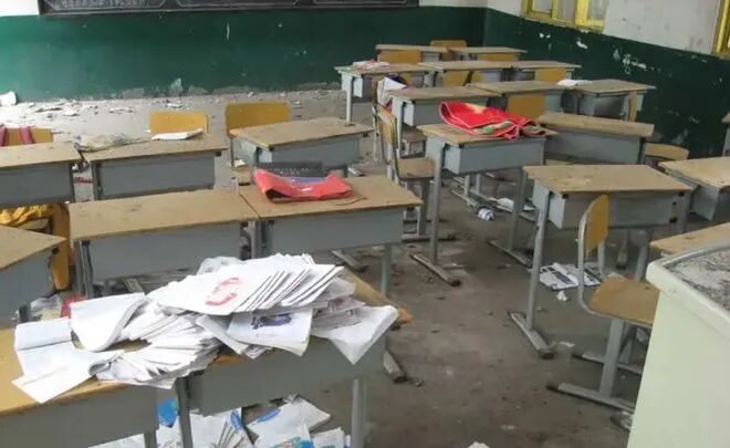 2008年5月12日下午,在地震发生的时候,天豪和萝卜正坐在班里上课。