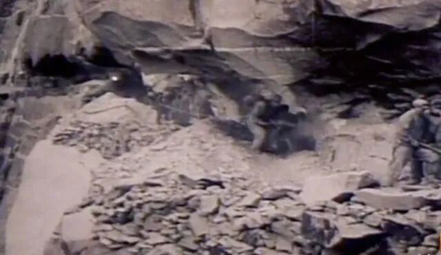 在一次勘探过程中,这位工程师系着绳索攀爬上了高处。但中途发生了意外,工程师也不幸牺牲了。