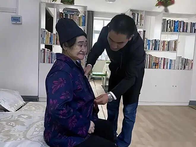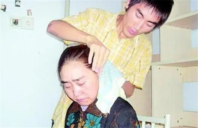 他每天早早起床,给母亲穿衣、洗脸,