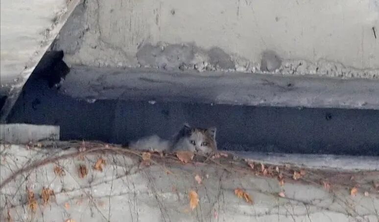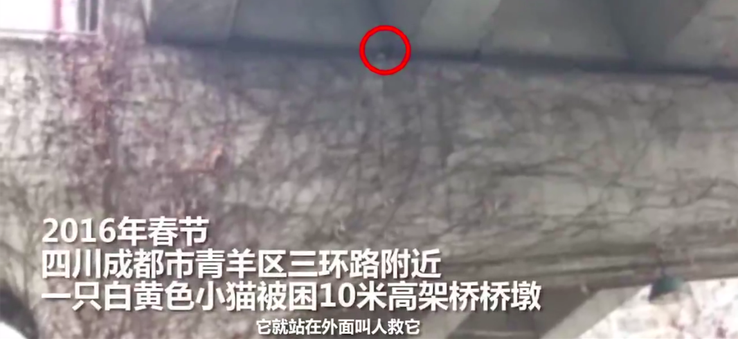1月27日,有一位女士联系到这家专门救助动物的社工组织,向他们简单说明情况:成都青羊区三环路附近的一座高架桥缝隙上有一只小猫,希望你们能把它顺利带回地面。