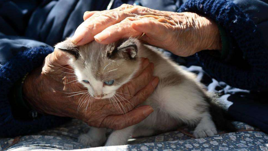 因此,戴爷爷平时就总是忍着剧痛来喂这只小猫咪。
