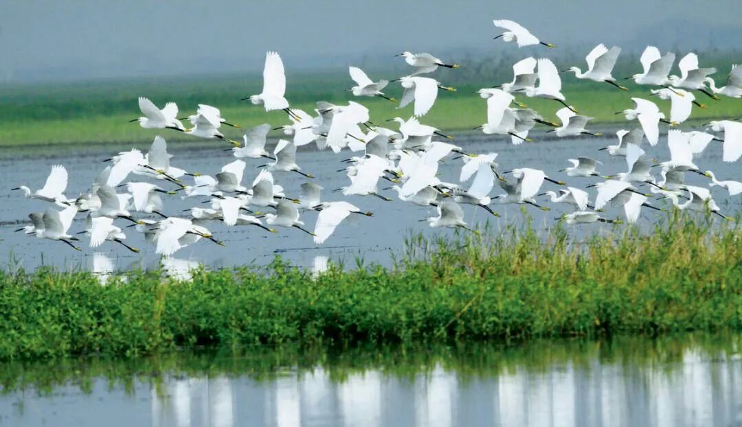 东洞庭湖出现大量白鹤的消息,引来30多个国家和地区的专家和学者,经过细致的考察,东洞庭湖湿地栖息的白鹤有900多只,是世界上绝无仅有的,最大的白鹤群。