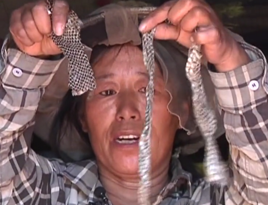 第二天一大早,从睡梦中苏醒的刘玉萍看到了她一辈子都难以忘记的场面,一睁眼,两条大蛇就出现在她的面前,那直勾勾的眼神差点没把她直接吓晕过去。