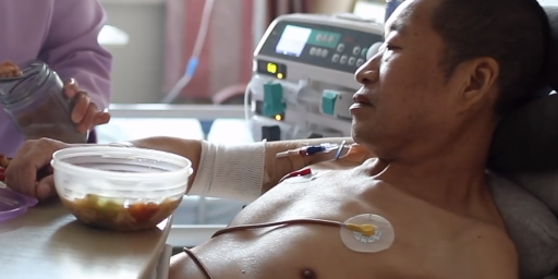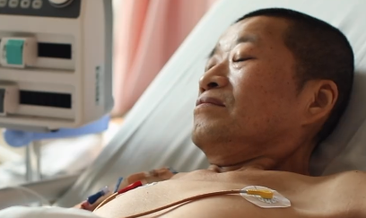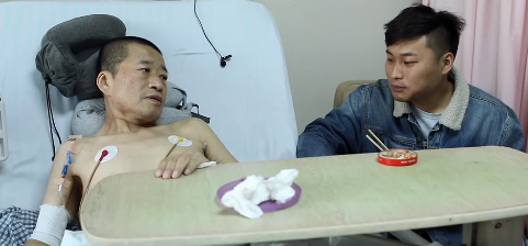 罗硕又带着父亲去了北京的一家肿瘤医院,在完成一系列的检查之后,医生先给老罗输上液体。