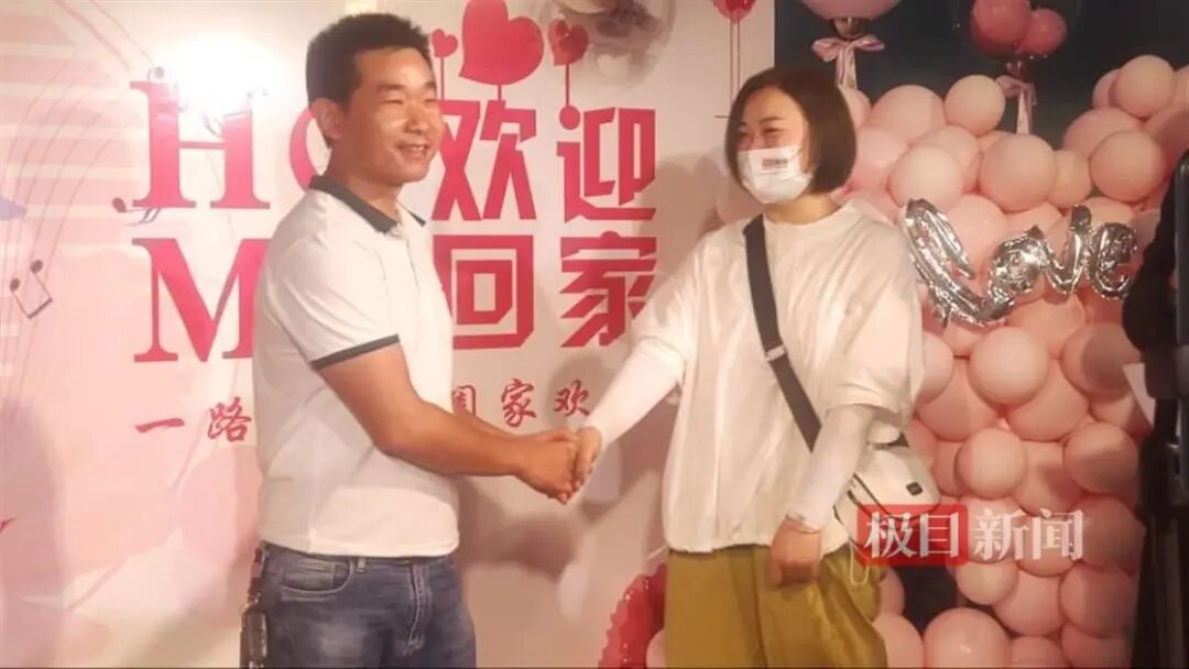 随后,付梦琴与十多位亲人合影留念,家人们簇拥着她,大声喊道:“欢迎回家!”此时,付梦琴的脸上露出了幸福的笑容。