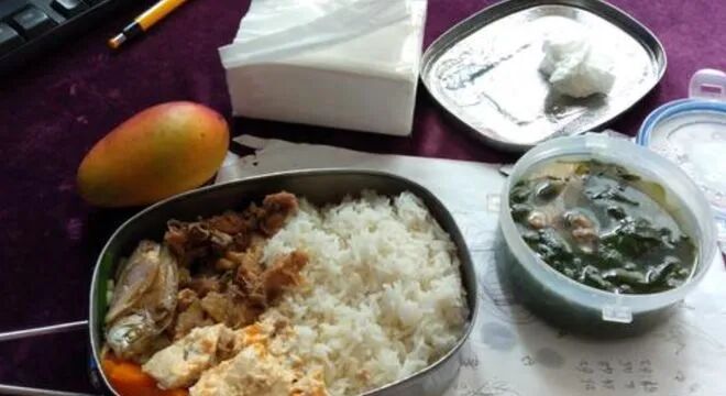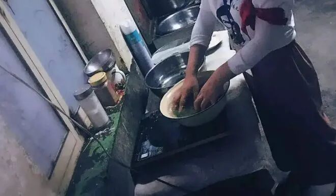 小男孩指了指角落那个破旧的电饭锅:“我自己做。”