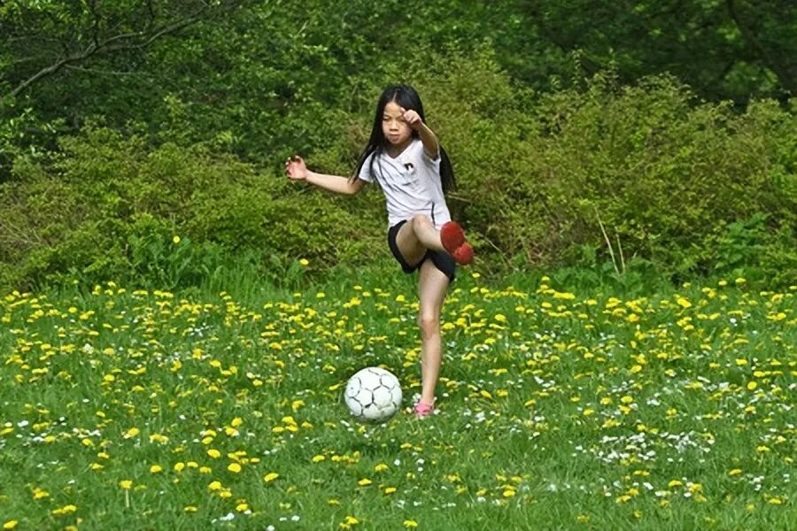 没想到女儿不光学得很快,踢得也挺好,还去参加了很多场的比赛,在一次比赛中因为表现突出,被一所中学的足球队教练看重。