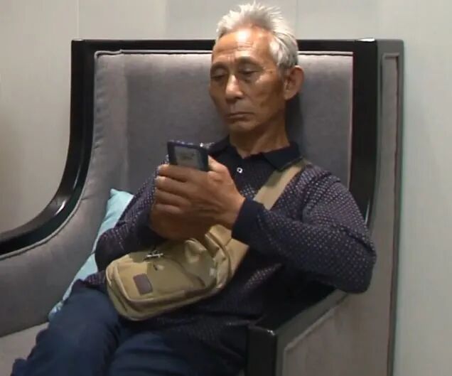 看到儿子这么孝顺,付大爷感动得鼻子一酸,老泪纵横。