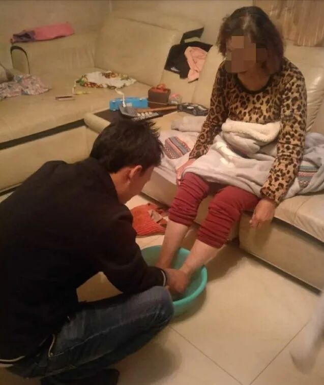 从小到大都是他帮儿子洗脚,如今他也享受到了儿子帮他洗脚的待遇。