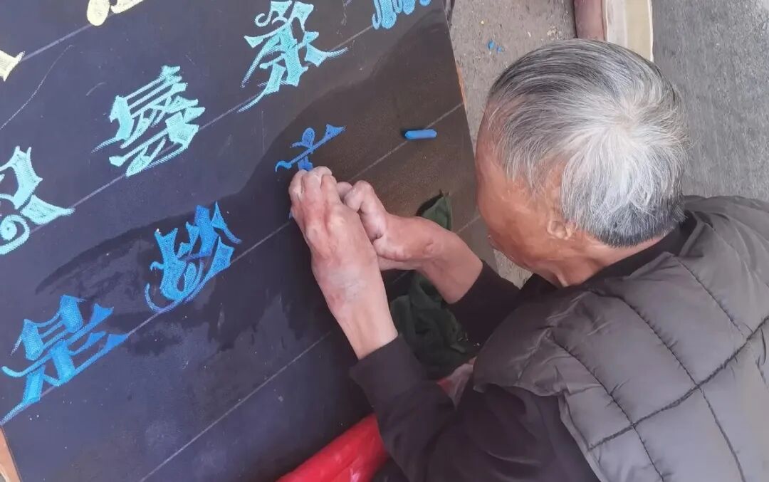 如此一来,每一个汉字就会非常美观,但是考虑到手部残疾的问题,崔显仁没法用毛笔字书写,于是他准备用粉笔来代替。