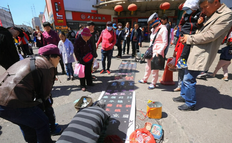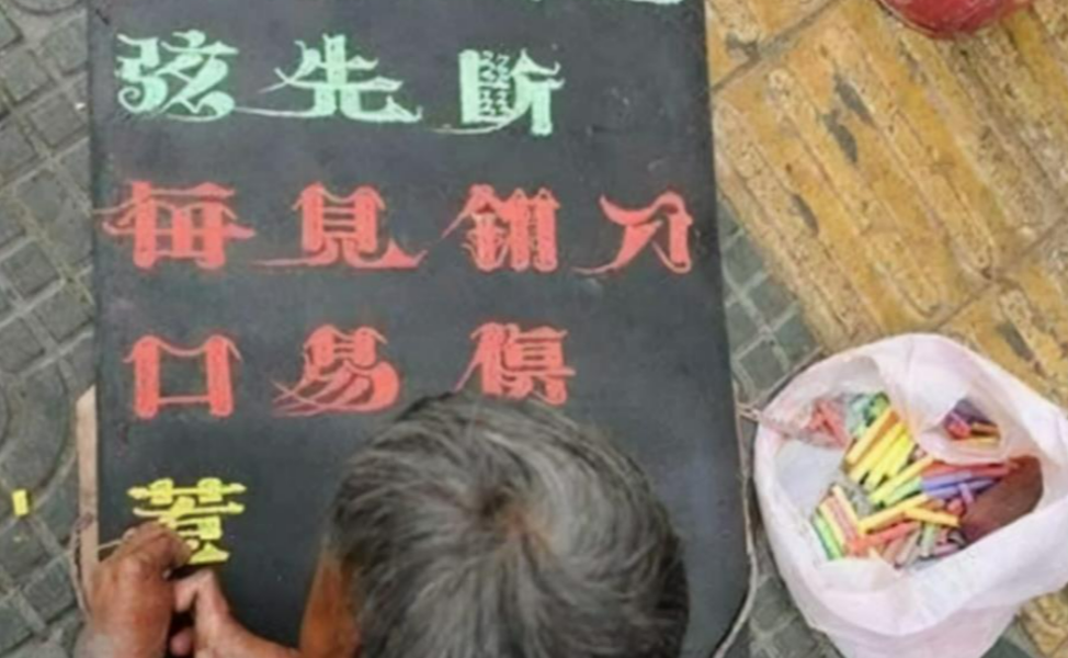 于是他开始调整心态,上街卖艺,而且他对妻子说过,只要他能写出一手漂亮的粉笔字,就一定可以成为一名优秀的手艺人,多少也能赚些钱,补贴家用。