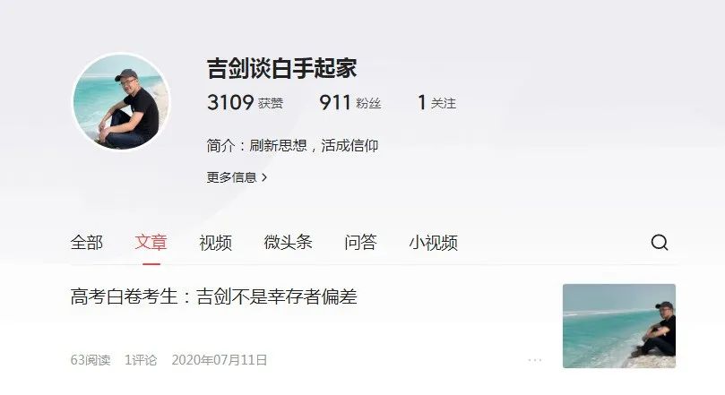 令所有人都没想到,在2008年高考的战场上,吉剑真的答了个0分试卷。