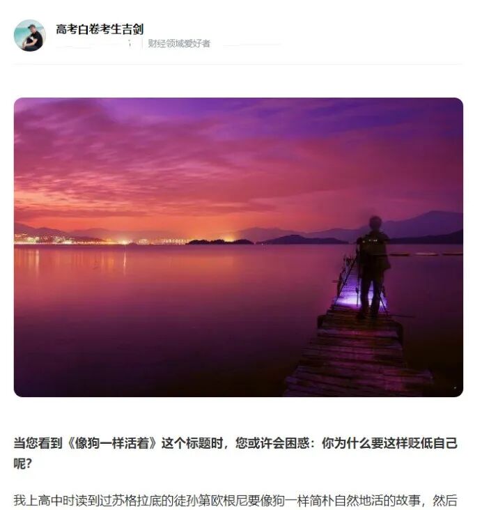 他还开通了社交账号,化名为心海时空,写出了《像狗一样活着》等文章,表达的是他对残酷生活的真实感悟。