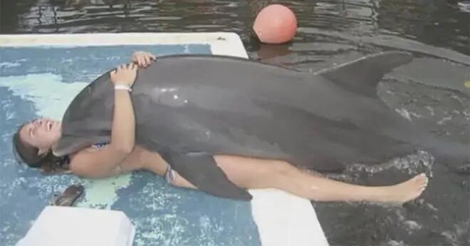 顶起女游客、搂住摩擦身体,海豚性侵女游客,致其腰部严重受伤(来源:万象新闻)