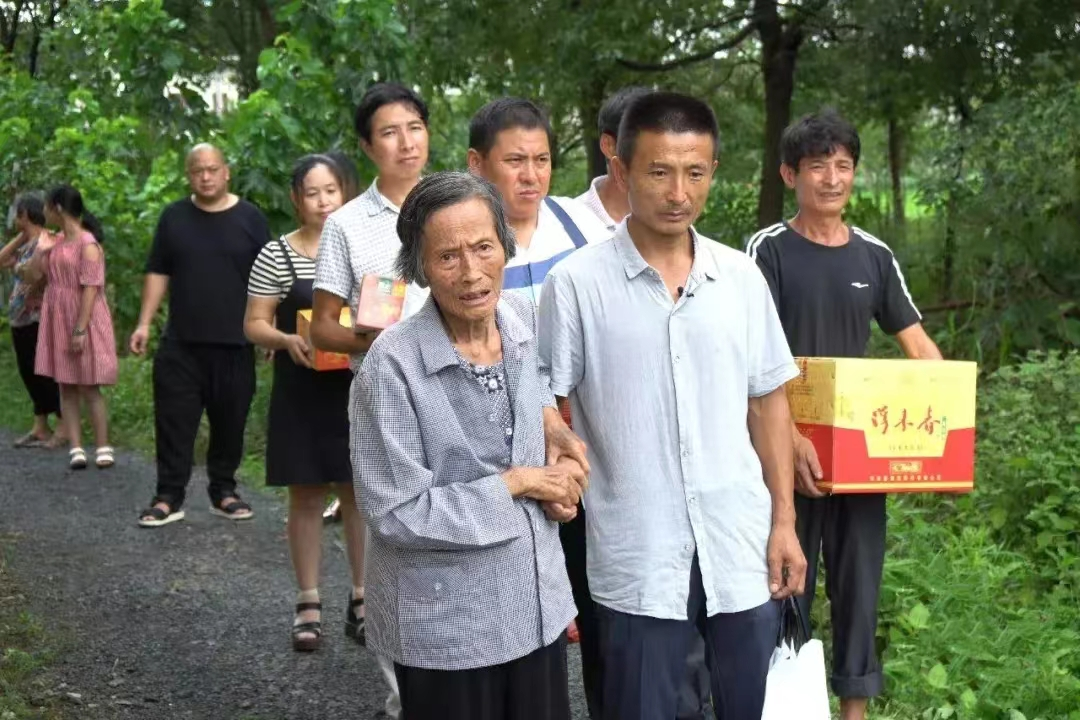 兄弟三人拥在一起抱头痛哭,手拉着手回到村里,与已经84岁高龄的老母亲相见。
