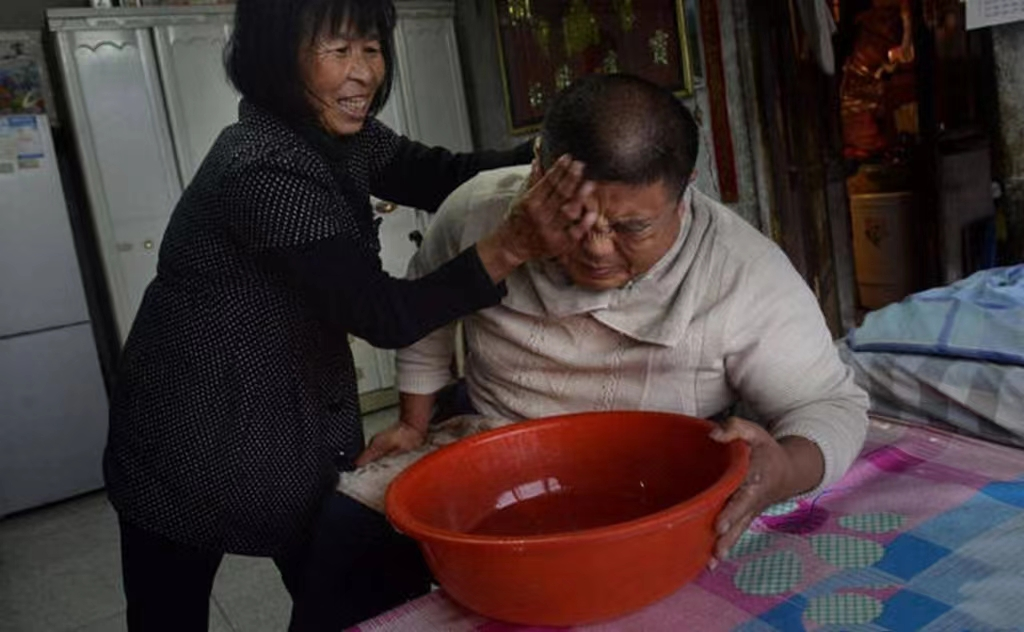 门玉明身高1.70米,体重有80多公斤,孙立英身材瘦小,给门玉明翻身很是吃力,每次都会累得满头大汗,要坐在凳子上喘半天。
