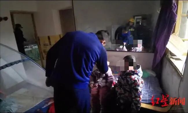 房门被打开了,一对年幼的兄妹出现在救援人员面前。这是一套两居室房屋,兄妹二人平时就在地铺上睡觉,整个屋子乱糟糟的。