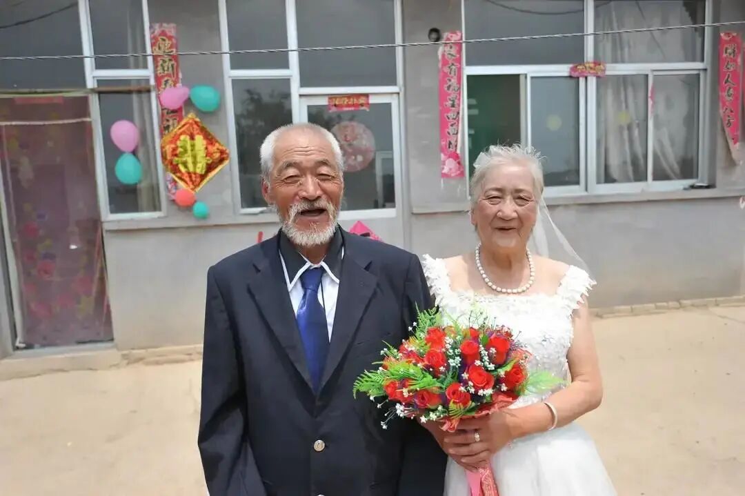 上个月在当地志愿者的帮忙下,焦大娘和段大爷补拍了婚纱照,