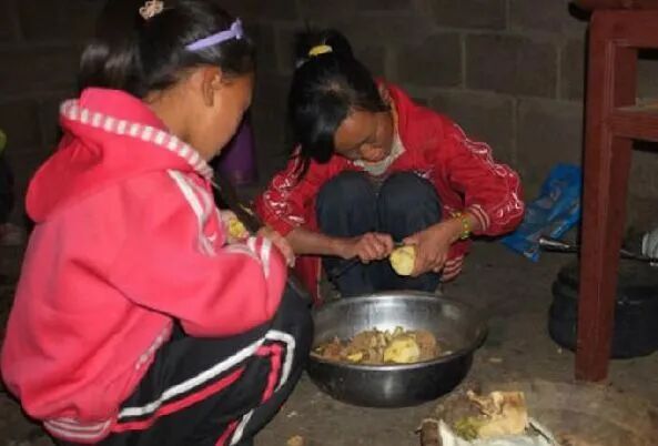 她很小的时候就学会了洗菜、扫地,春天的时候还会跟着年纪比较大的伙伴们一起上山挖野菜。