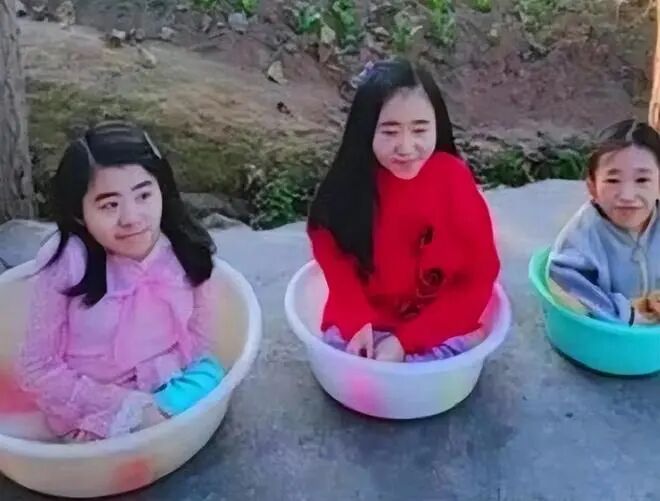 虽然都是成年人,但是她们都能坐进小小的塑料盆里,就像一个个“盆栽娃娃”,这也正是村民们同情和畏惧他们的原因。