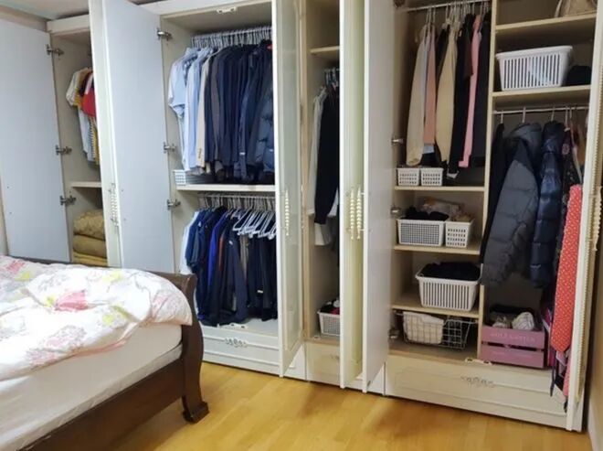 经过詹某某同意,记者还看了一下她的衣柜,衣柜并不算大,里面的衣物也不多,大约只有20多件衣服和五六个包包。