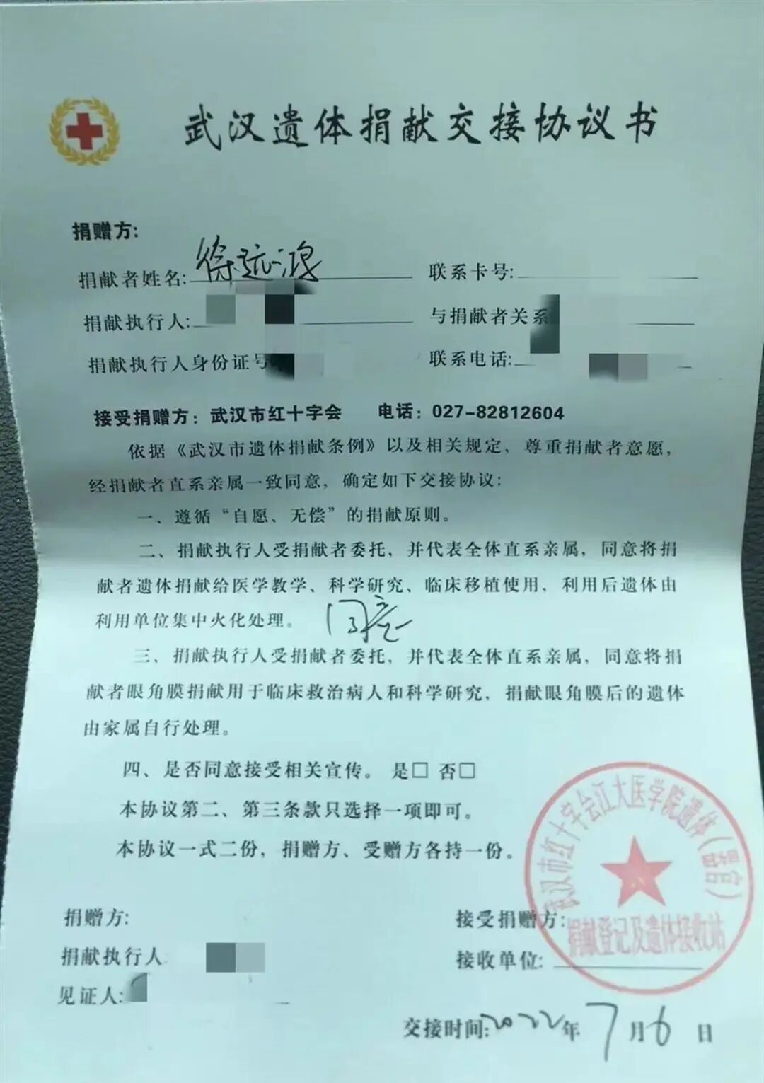 再加上刚去世不久的父亲也捐赠了遗体,陈昕圆也向母亲表示了,自己也要为医学为社会做贡献的意愿。并提出尽快进行遗体捐献。