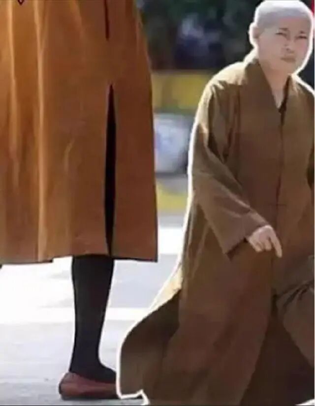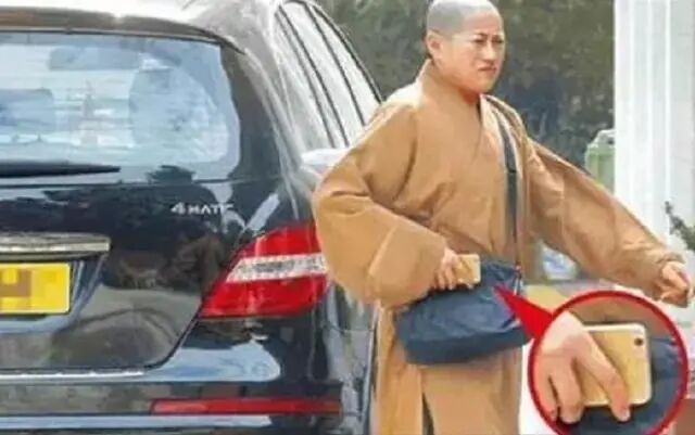 等寺内人少些的时候,她就一改往常,手拿新款苹果手机,脚穿名牌皮鞋,甚至僧袍都改成短款,露出内里黑色丝袜。