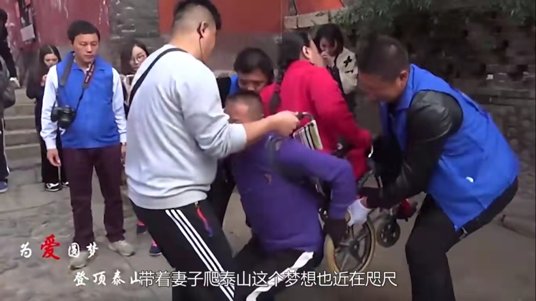 可是为了完成心中的这一梦想,背妻子登泰山绝顶欣赏风光,再苦再累的时候,张玉华都咬牙坚持了下来。