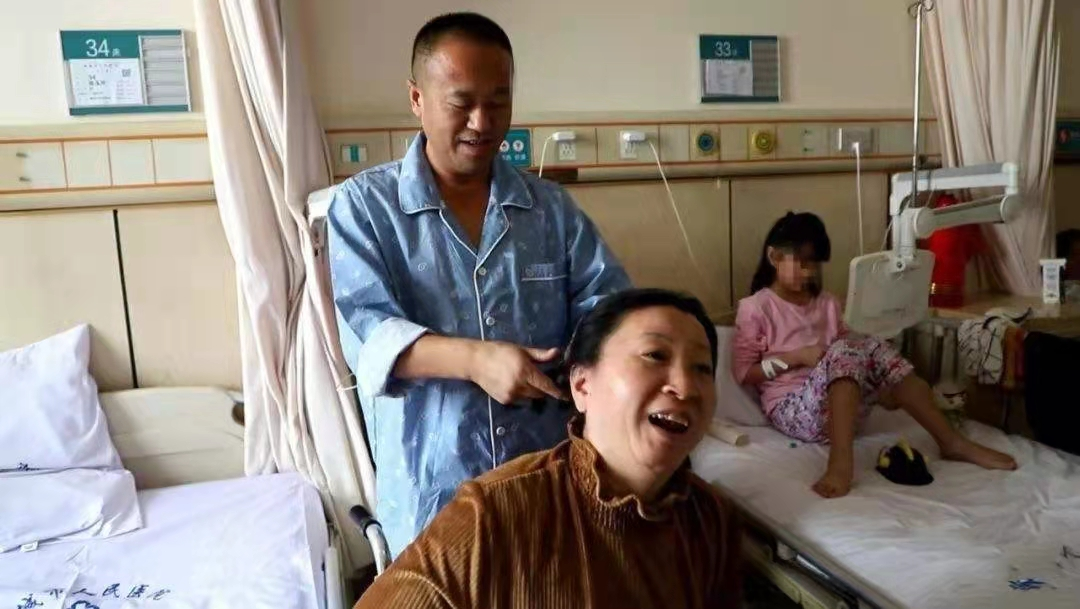 每当这个时候,张玉华总是耐心地帮妻子擦洗身体,弄干净排泄物,然后换上干净的衣服和床单。