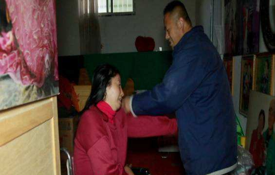 张玉华给妻子做完全身按摩后,怕她身体着凉,便将她搂在怀里,给她唱歌。