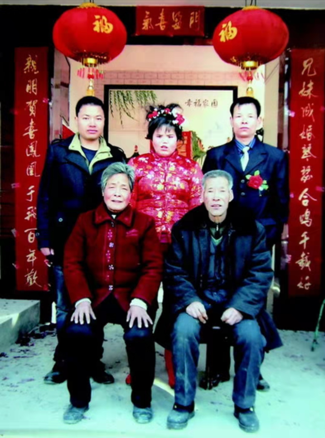 那一天晚上,当亲朋好友们离去后,在新房子的大红喜字下,王家的一家五口留下了第一张幸福的全家福。