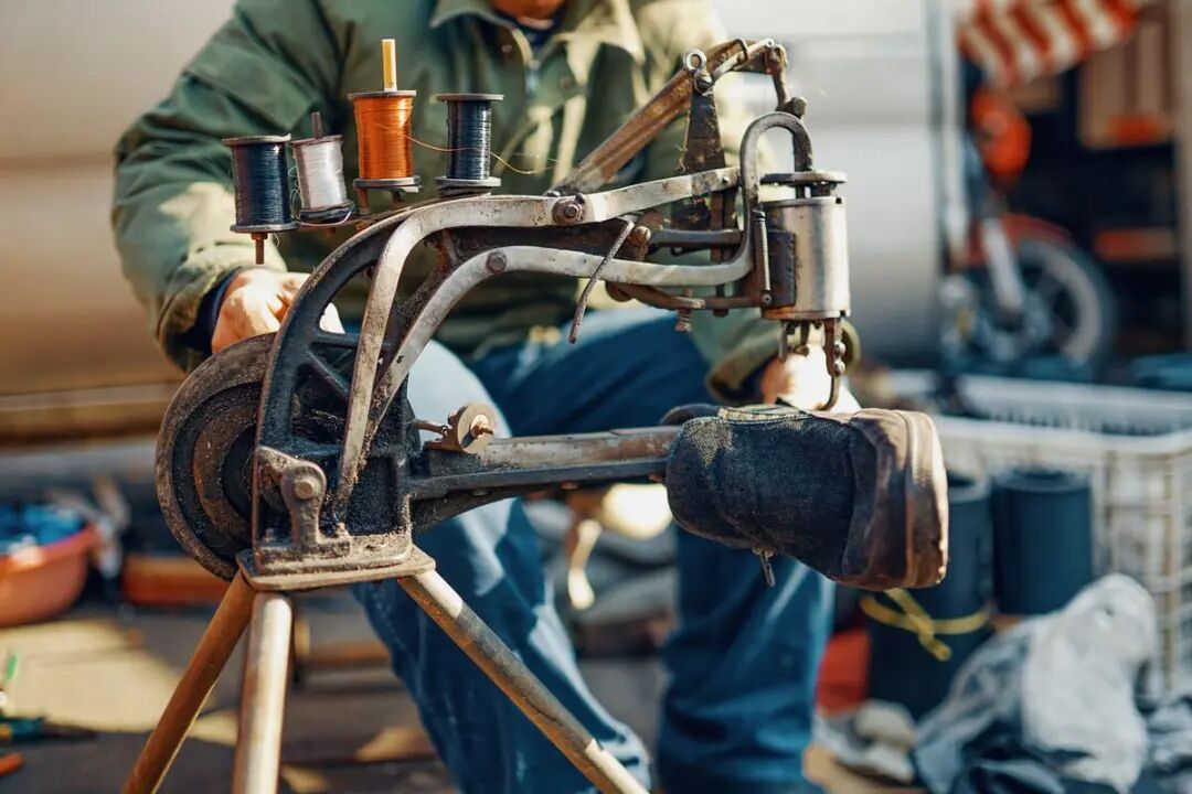 只见这位修鞋匠驼着背、弯着腰,衣衫褴褛,头发凌乱,一条腿是瘸的,浑身上下沾满了黑漆漆的污渍和鞋油。